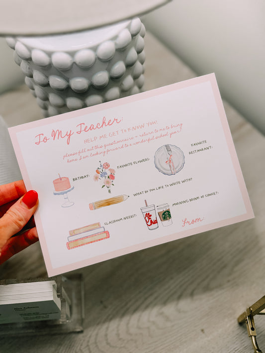 Back to School Teacher Fill in Cards set of 10