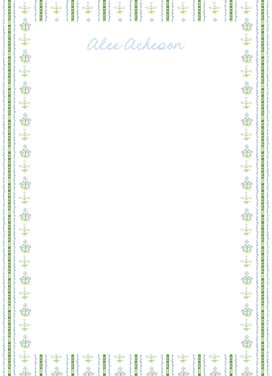 CUSTOMIZED Blue Floral Notepad 8x5